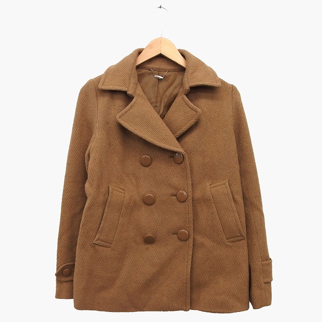 > ヘザー Heather Pコート ピーコート ジャケット ダブル 総柄 チャーム ウール混 L ブラウン 茶 /HT24 レディース