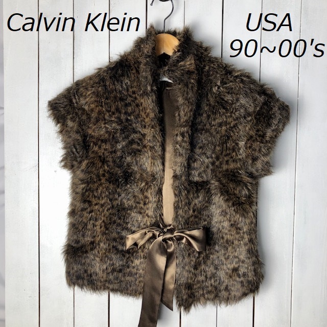 > USA古着 90s~ Calvin Klein もこもこレオパードファーベスト M~L ヒョウ柄 カルバンクライン オールド ヴィンテージ アメリカ古着 ●101