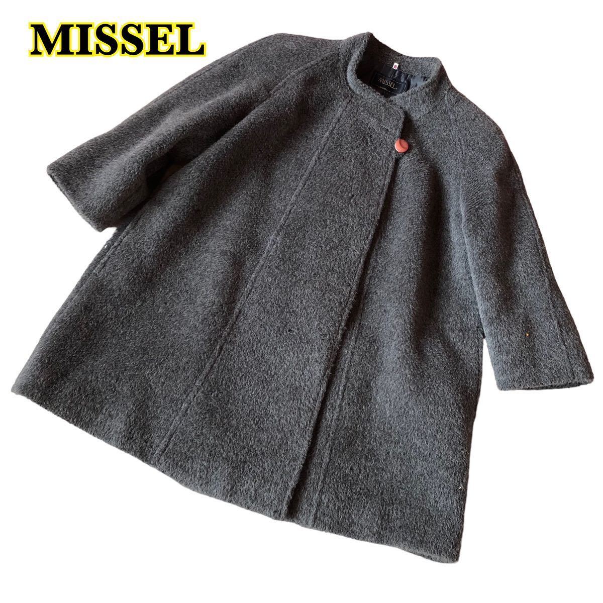 - MISSEL ミゼール ウールコート スタンドカラー グレー レディース Mサイズ相当 【AY0838】
