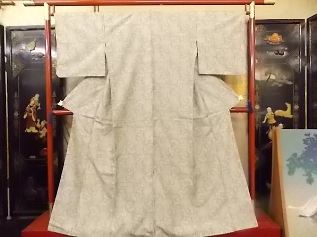 - きもの今昔4615 紬のきもの 白絣紬広衿袷仕立て 大島風十日町紬 表地に汚れ有り 身丈160cm
