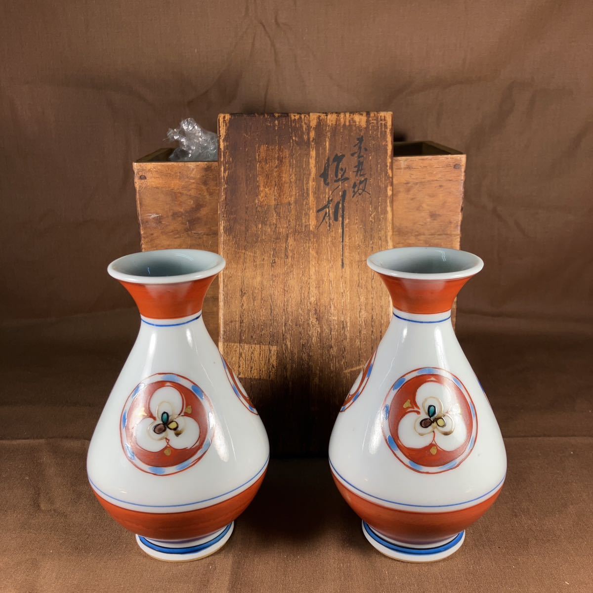 - 松本佐吉造 赤絵徳利 一対 共箱 888