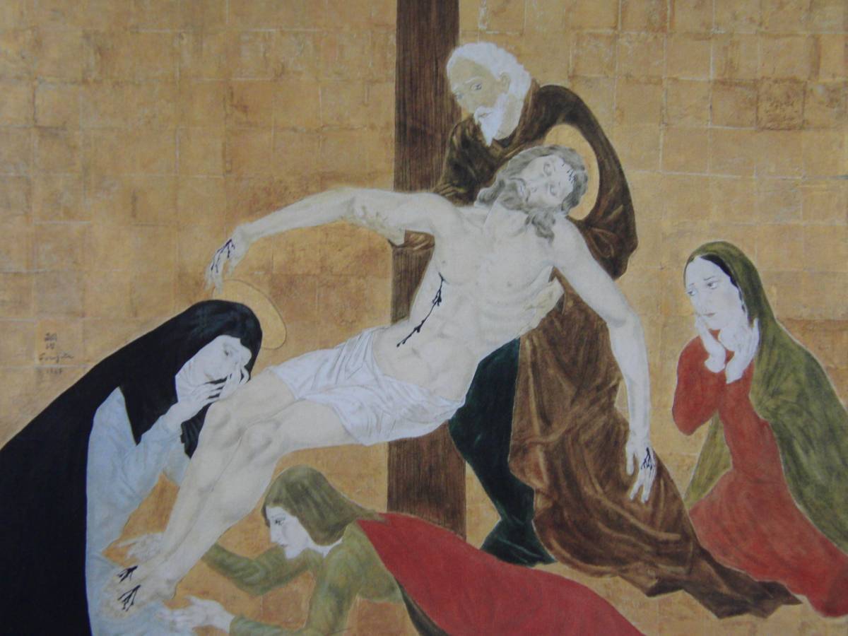 - 藤田嗣治、【Descente de Croix】、希少な額装用画集より、厳選、新品額装、マット額装付、状態良好、送料込み