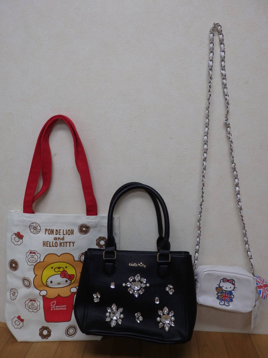 - F6) サンリオ ハローキティ バッグ3点セット (ビジュー)ミニトート BJ BK / ショルダーポーチ UJ / KTトート PDL 未使用タグ付き