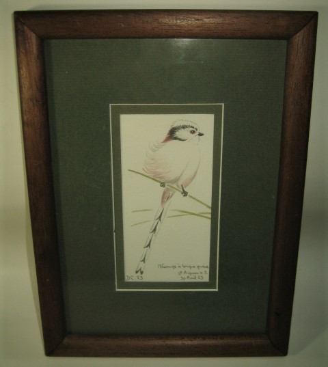 - レア★額装 水彩画 原画 デニス・シャヴィニー フランス ヨーロッパエナガ 博物画 Denis Chavigny サイン入 画家/鳥類学者《検》シマエナガ