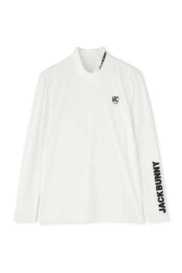 > 新品正規品 ジャックバニー パーリーゲイツ サイズ4 裏微起毛 暖かい モックネックシャツ ホワイト 袖ロゴ 秋冬インナー 送料無料