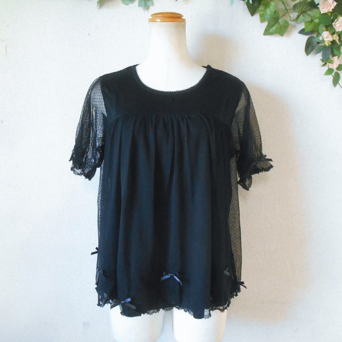 - 新品 タグ付き 18360円 ピンクハウス PINKHOUSE ドット チュール & サテン リボン の 可愛い カットソー 黒