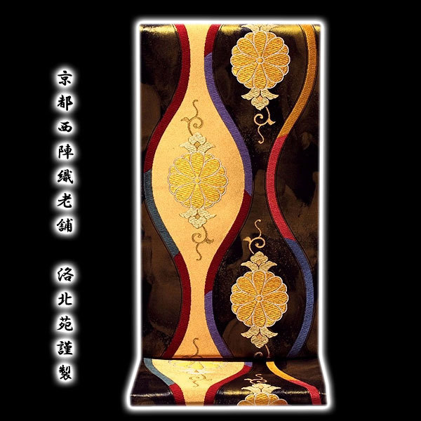 > [和楽屋] ■京都西陣織 老舗「洛北苑謹製」 色段 立桶文 菊蔓 黒地 正絹 袋帯■振袖 訪問着 付下げなど