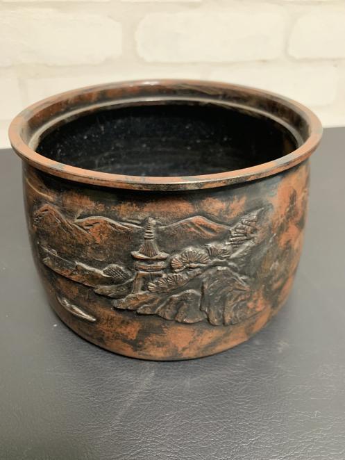- 銅製 盆栽用鉢植え アンティーク 16cm × 11cm 古美術 骨董品
