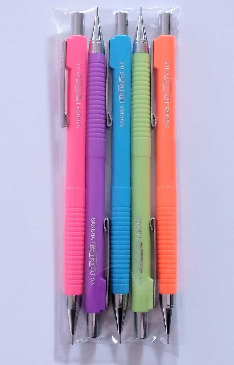 - 送料無料★RETRICO レトリコ シャープペンシル 0.5mm 5本セット ビビットカラー 限定カラー ピンクパープルブルーライムグリーンオレンジ