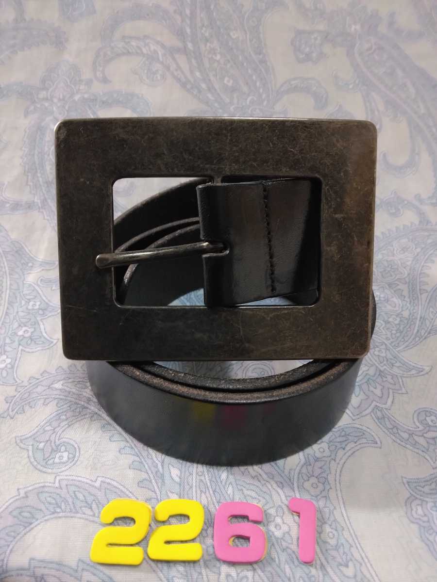 - 2261!ドルチェ&ガッバーナスクエアバックルのハトメ付黒色レザーベルト イタリアミラノ付属品なし