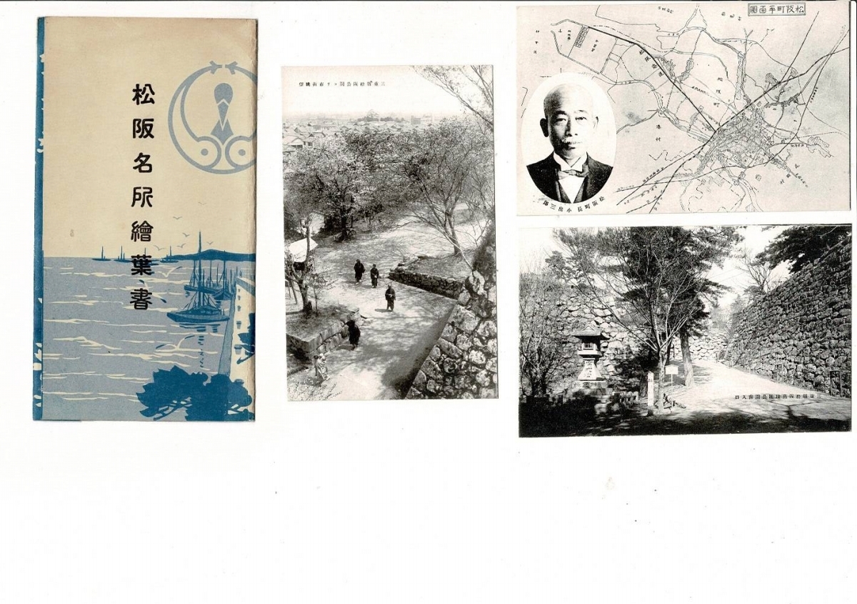 - *松阪名所絵葉書 三重県松阪町役場発行 レトロ絵葉書3枚とタトウ 松阪町平面図・町長小出三郎/城址公園南入口/市街眺望 RPM04223MU4