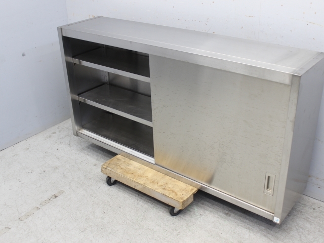 - 吊戸棚 1500×350×750 作業機器 業務用 店舗用品 厨房用品 ステンレス棚 業務用棚 固定式 壁掛式 3段 扉付 収納 食器棚 10-36634 75384