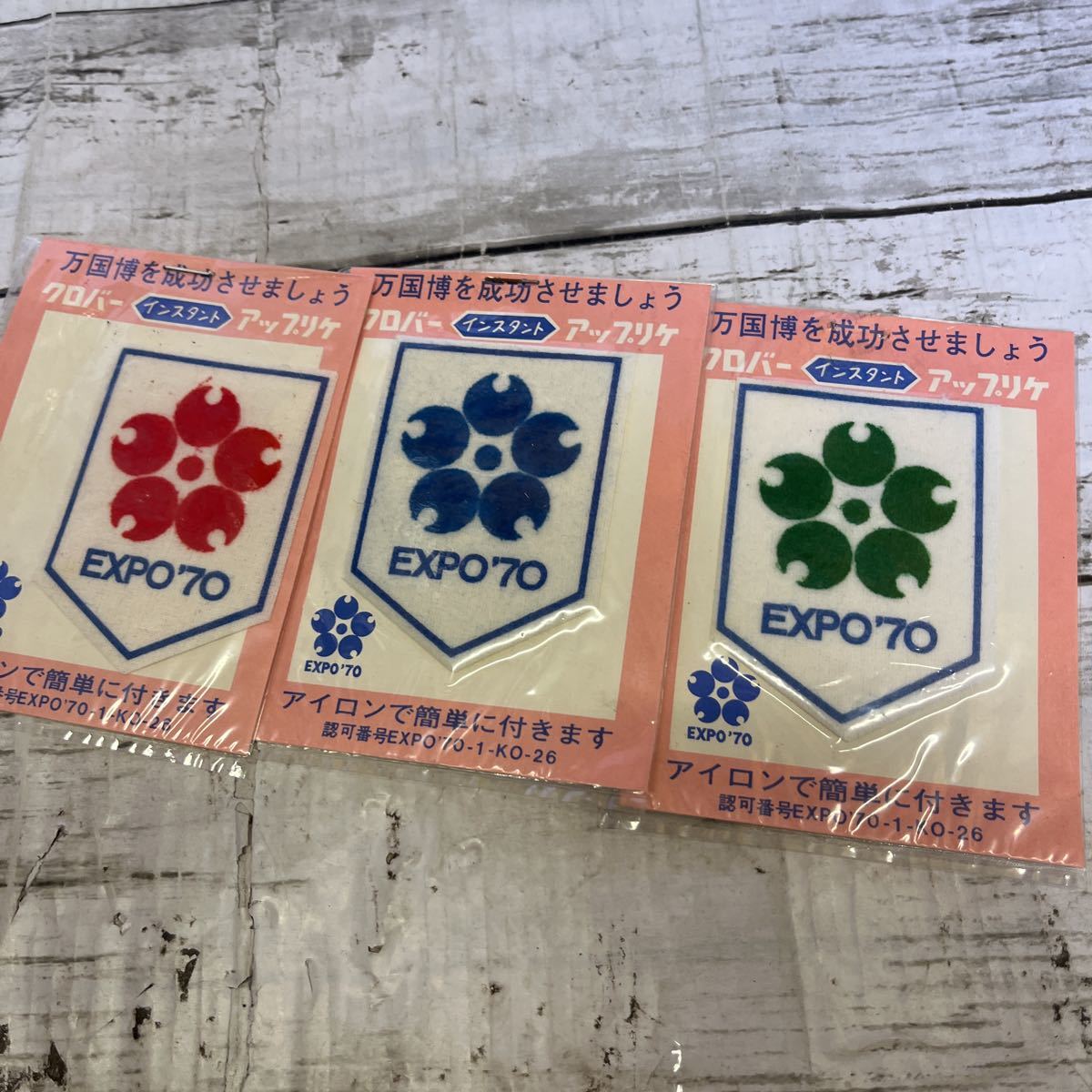 - j747 即決 大阪万博 EXPO 70 アップリケ 3色 未使用品 クローバー 正規品 レトロ 希少