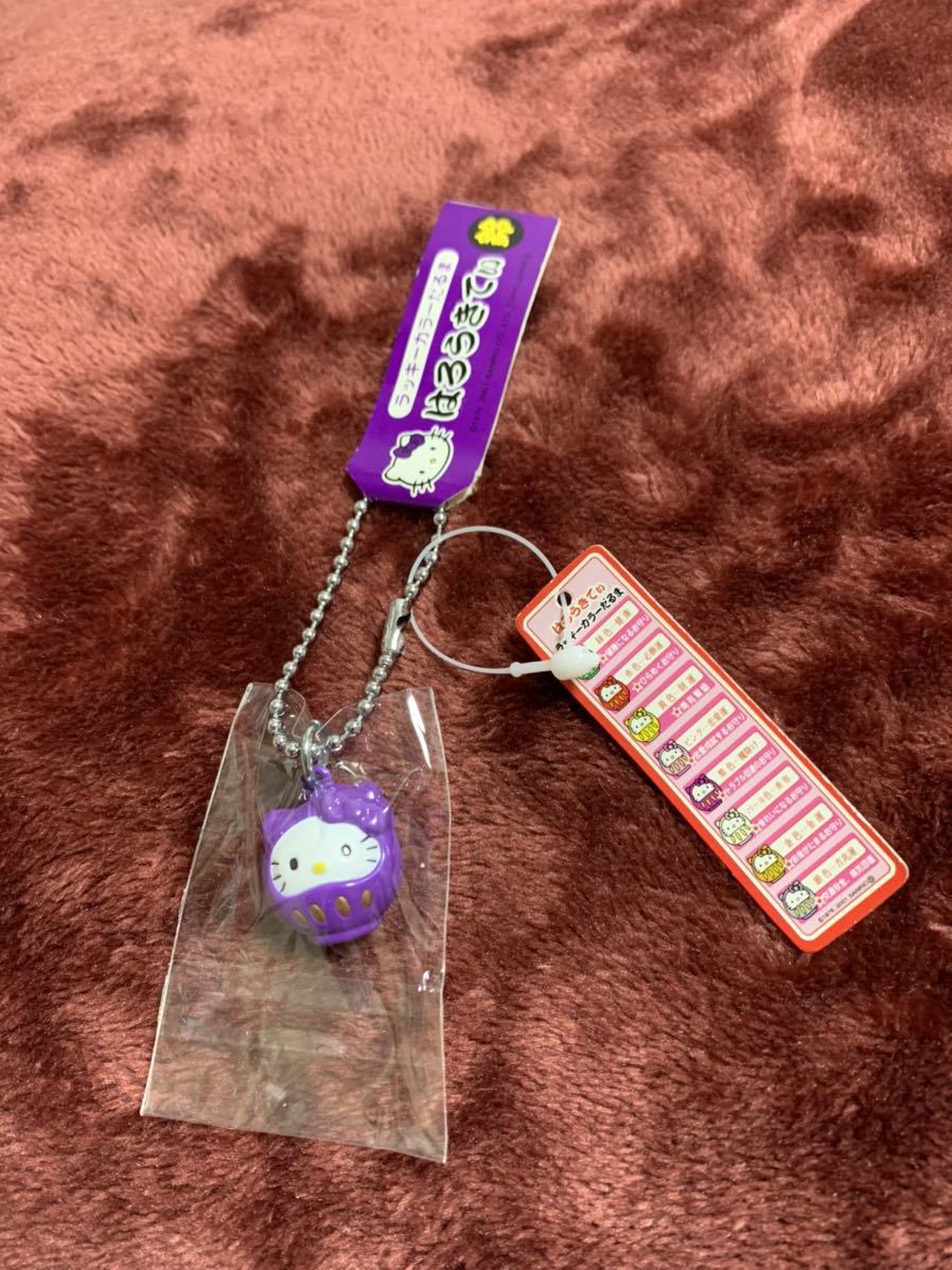 > ラッキーカラーだるまはろうきてぃ鈴キーホルダー・・・パープル魔除け