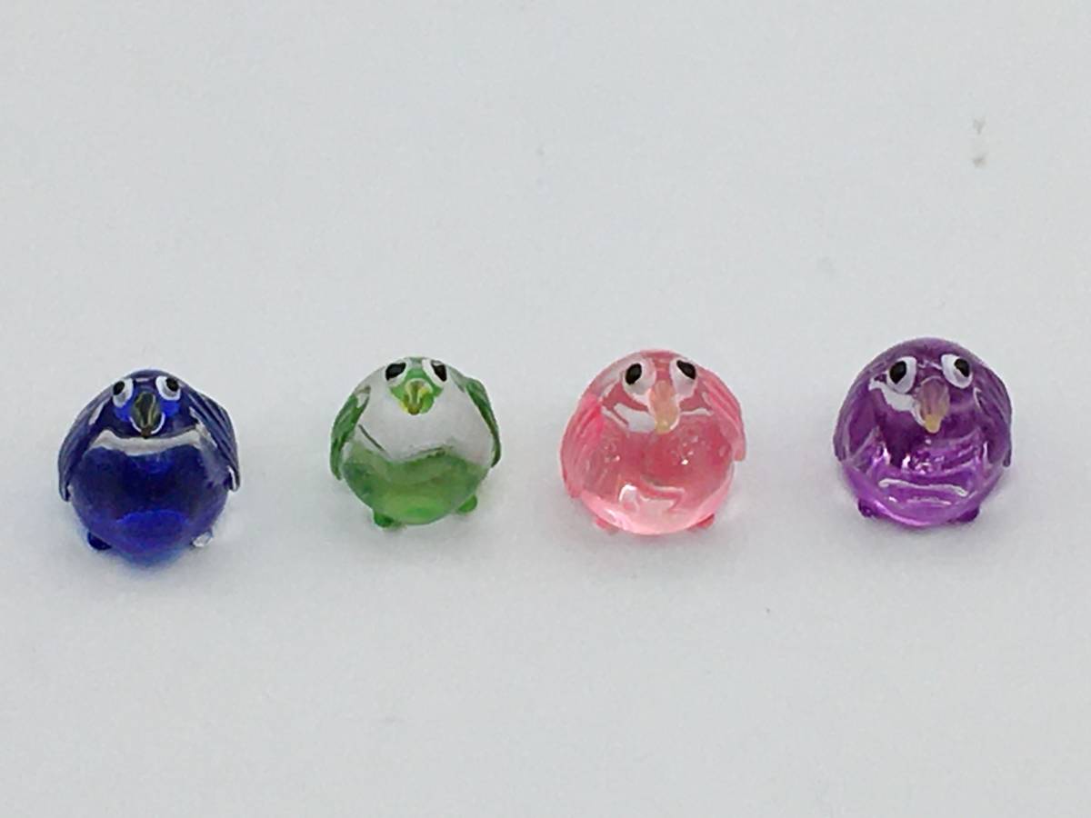 - 【2004】ガラス細工 ペンギン 青 緑 紫 ピンク 4点セット *【979101000023】
