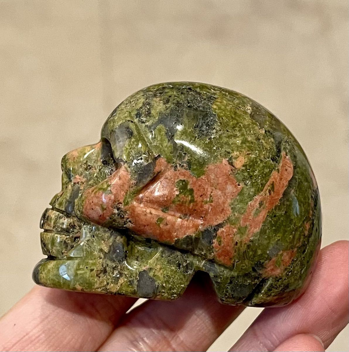> ユナカイト スカル 髑髏 骸骨 置物インテリア パワーストーン 幸運 ラッキー 天然石 魔除 お守 グリーン 小物 雑貨グッズ