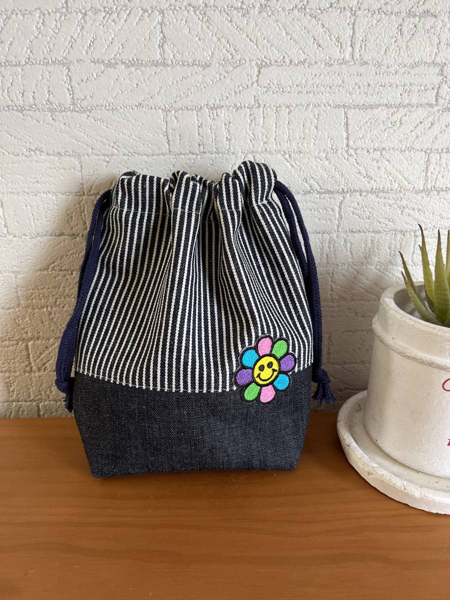 - 即決♪コップ袋・・・・・・・③ヒッコリー&デニム(フラワースマイル)