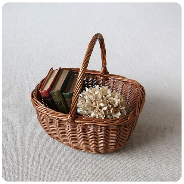 - イギリス アンティーク バスケット 籐製 ラタン かご インテリア雑貨 カントリー 持ち手付き V-041