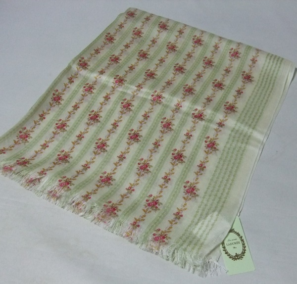 > LADUREE ラデュレ 小花柄 レーヨン X 絹 X ウール 大判 ストール 未使用品 クリーム系 百貨店 税込定価 13.200円