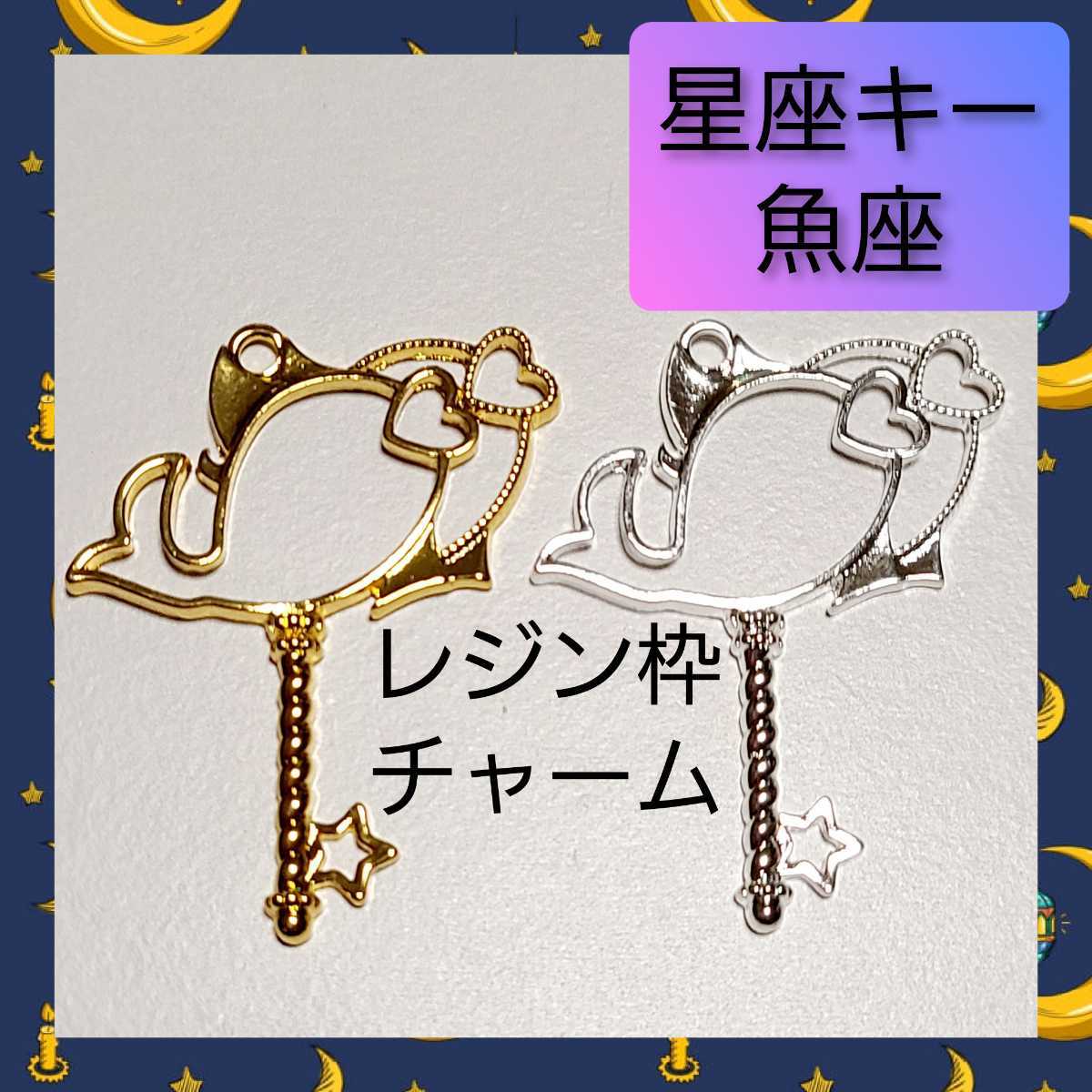 - 【ハンドメイドパーツ】星座キー 魚座 レジン枠 フレーム チャーム 01