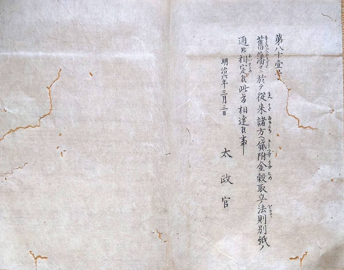 - f23022119〇明治布告布達 明治6年 神奈川県 大江卓 貸付金穀取立法則 第1条~第19条〇和本古書古文書