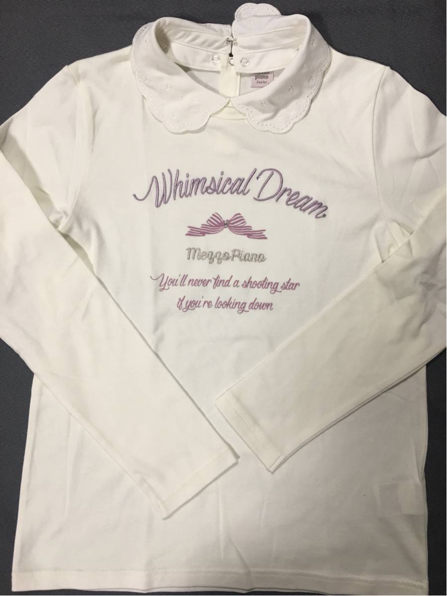 > メゾピアノ新作取り外し刺繍衿つき長袖Tシャツ新品オフホワイト160cmラ★激安!