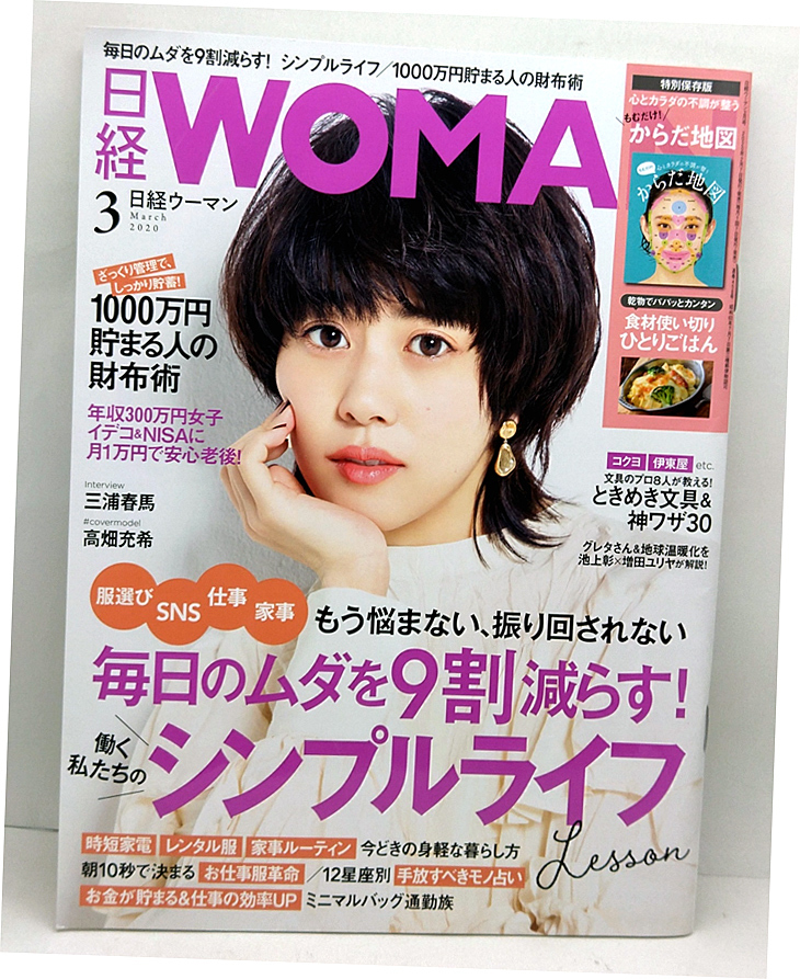 - ◆日経WOMAN「ウーマン」2020年3月号 No.458 毎日のムダを減らす!シンプルライフ 表紙:高畑充希 ◆日経BP