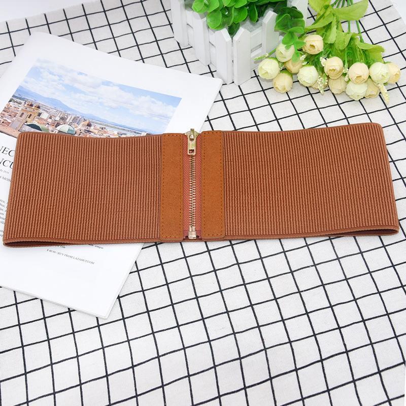 - 【ブラウン】ゴールドジッパー レディース 幅広 ゴムベルト