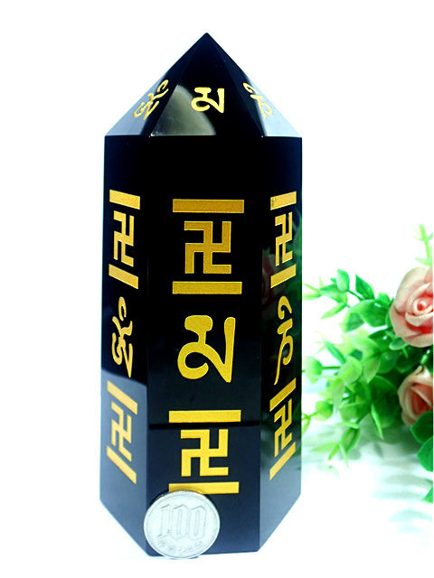 - ★AAA級天然オブシディアン★六字真言六角柱174U2-84U22a▼▼▼
