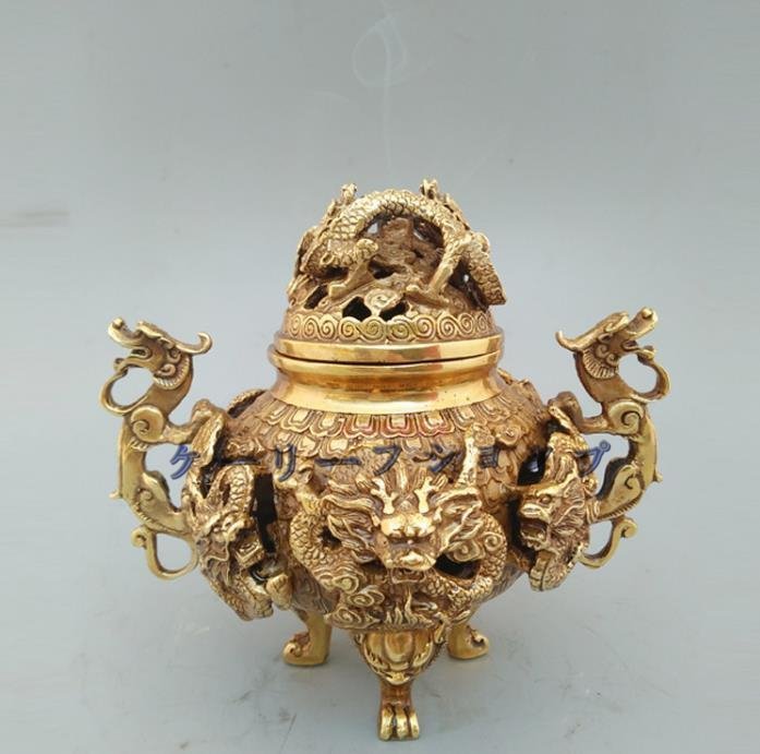 - 【ケーリーフショップ】/香炉/竜/銅器/銅製品/置物/装飾品/工芸品/風水/財運グッズ