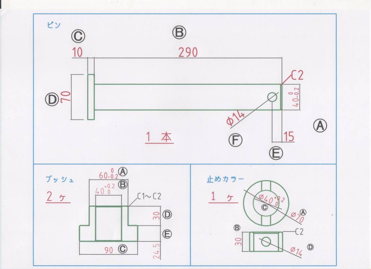 - NO.138 φ40用 バケットピン一式 バケットピン1本 ブッシュ 2個 止めカラー1個(リンクストッパー)