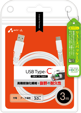 - 高機能強化繊維で抜群の耐久性!USB Type-C充電ケーブル3m・UCJ-ESTG3MWH