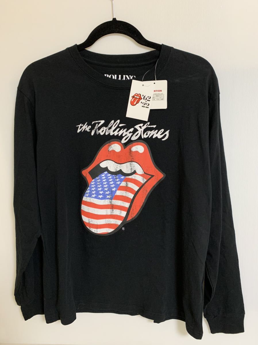> 即決/タグ付き/ROLLING STONESローリング・ストーン/プリントデザイン 長袖Tシャツ/Lサイズ/チェスト96~104/ブラック/黒色/擦れ