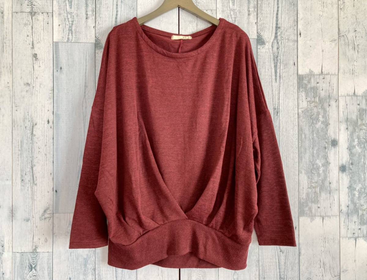 - ◆美品◆ 薄手ニット風 ドルマントップス ダークレッド レディースM