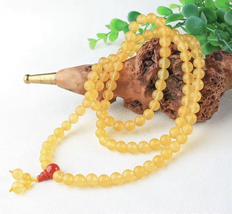- イエローアゲート 黄瑪瑙ブレスレット 念珠 数珠 108珠 天然石 魔除け 男女兼用 幸運 ラッキー 財運金運UP レディース メンズ アクセサリー