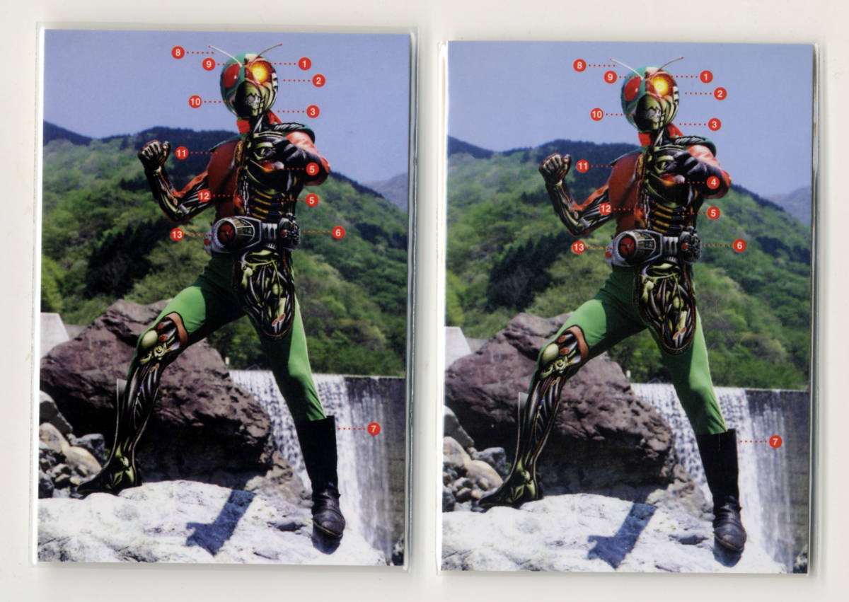 - ◆防水対策 厚紙補強 カルビー 仮面ライダーチップスRカード 第1記録 122番a b エラー&修正版 2枚組 特殊能力図解 スカイライダー 即決