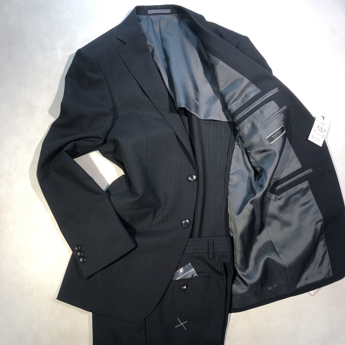 - 新品 定価3.5万円【サイズY6★スタイリッシュスーツ】2Bシングルスーツ ブラック系 ストライプ 背抜き センターベンツ ノータック