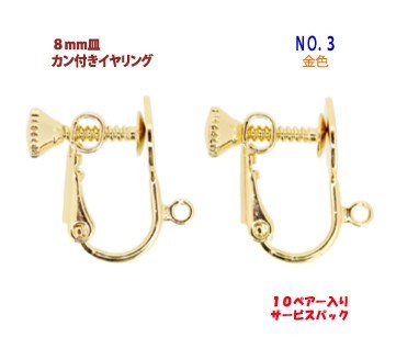 > アクセサリーパーツ 金具 8mm皿カン付き イヤリング NO3 16KG金メッキ 金色 ゴールドカラー 10ペアー入りサービスパック
