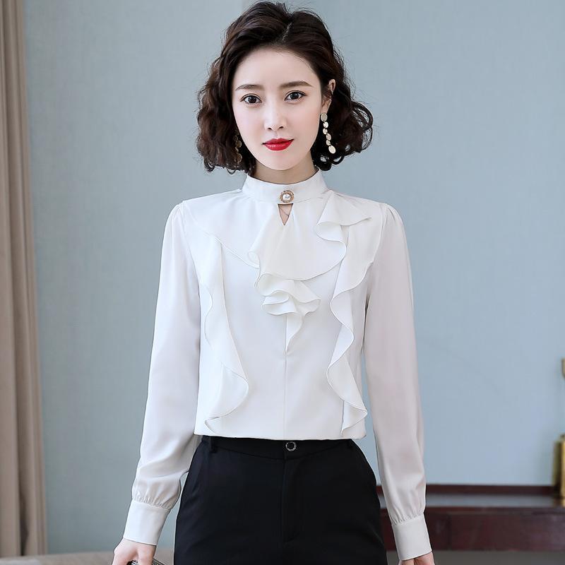 - 【ホワイト★L】レディース ブラウス シャツ 長袖