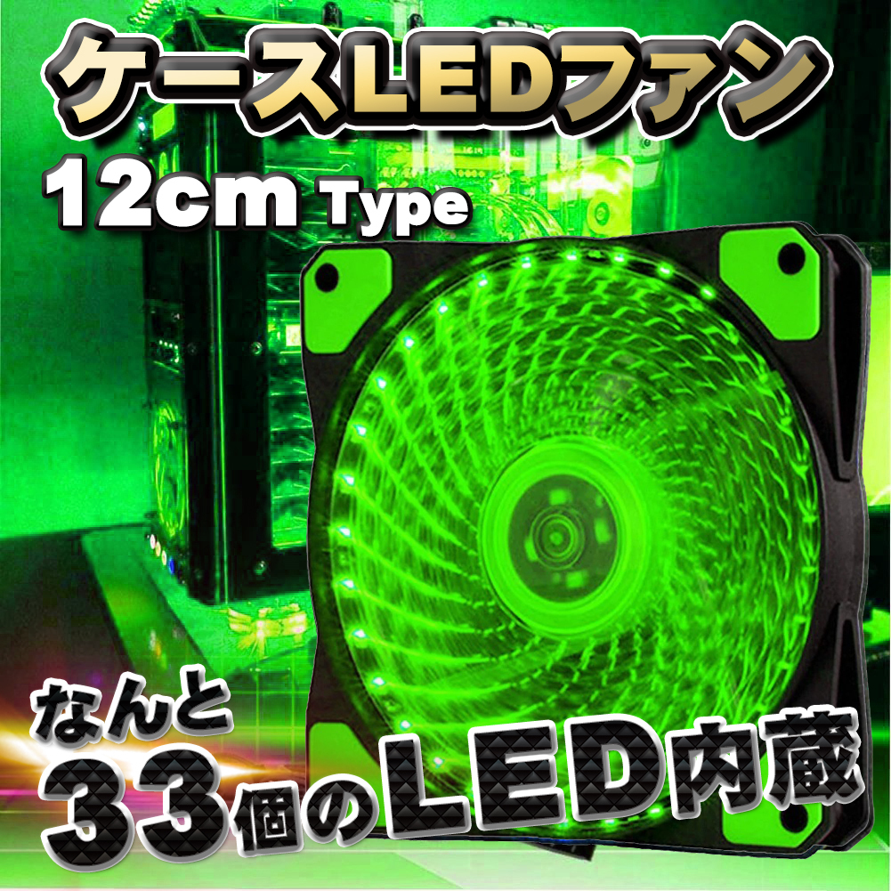 - 【グリーン】 33個のLED内蔵 ケースファン 静音 LED しっかり 冷却 PC 12V FAN 12cm タイプ