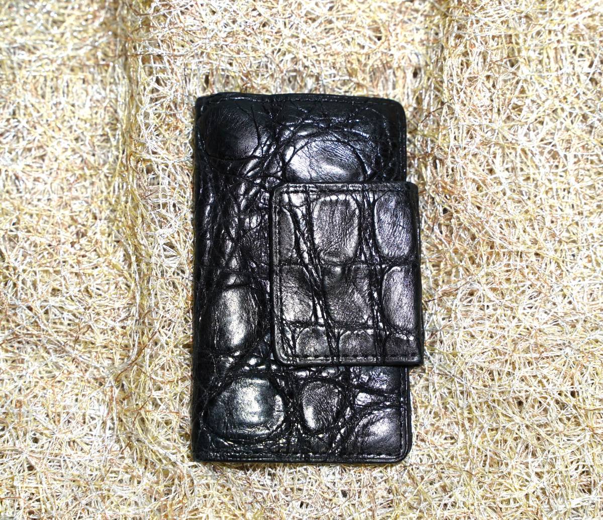 - 高級 ブラック ワニ革 リアル クロコレザー6連キーケース クレジットカード 収納可能 ポケット 有り