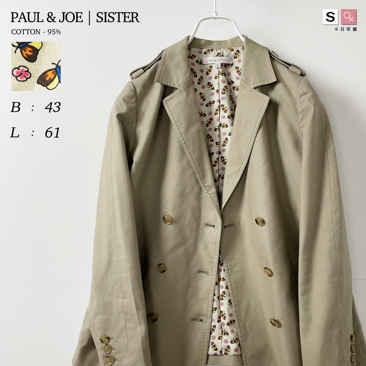 > PAUL & JOE ダブル ブレザー ベージュ 薄手 テーラード ジャケット 綿 Aライン 春 秋 カジュアル コットン ミドル丈 ポール&ジョー 7号 34