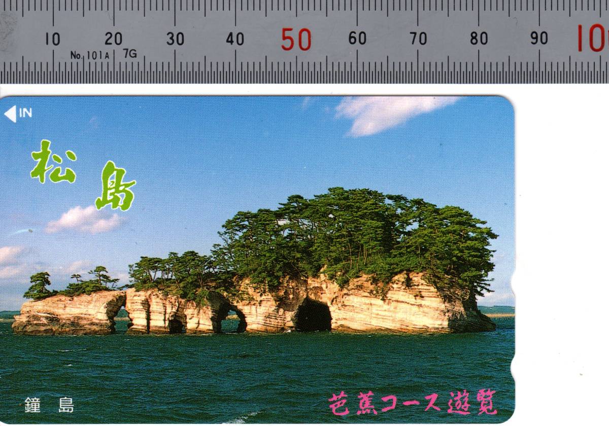 - 「松島~日本三景 鐘島 テレホンカード 芭蕉コース遊覧」未使用【送料無料】「熊五郎のトレカ」00901636