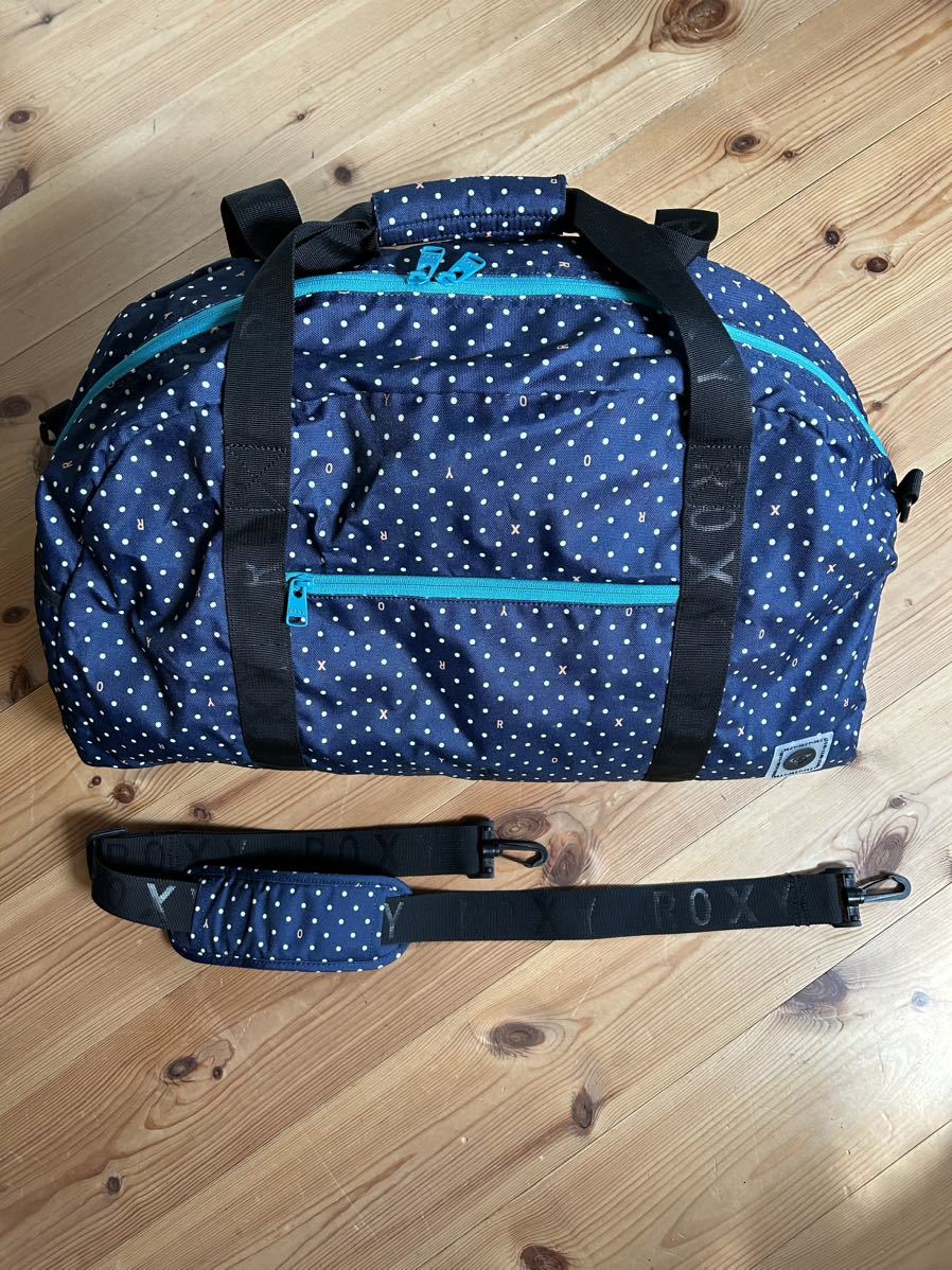 > roxy バッグ ロキシー 旅行 自然学校 修学旅行 ビーチ サーフ系 プール サーフィン 海 ネイビー 紺 ドット サーファー ハワイ 美品★海水浴