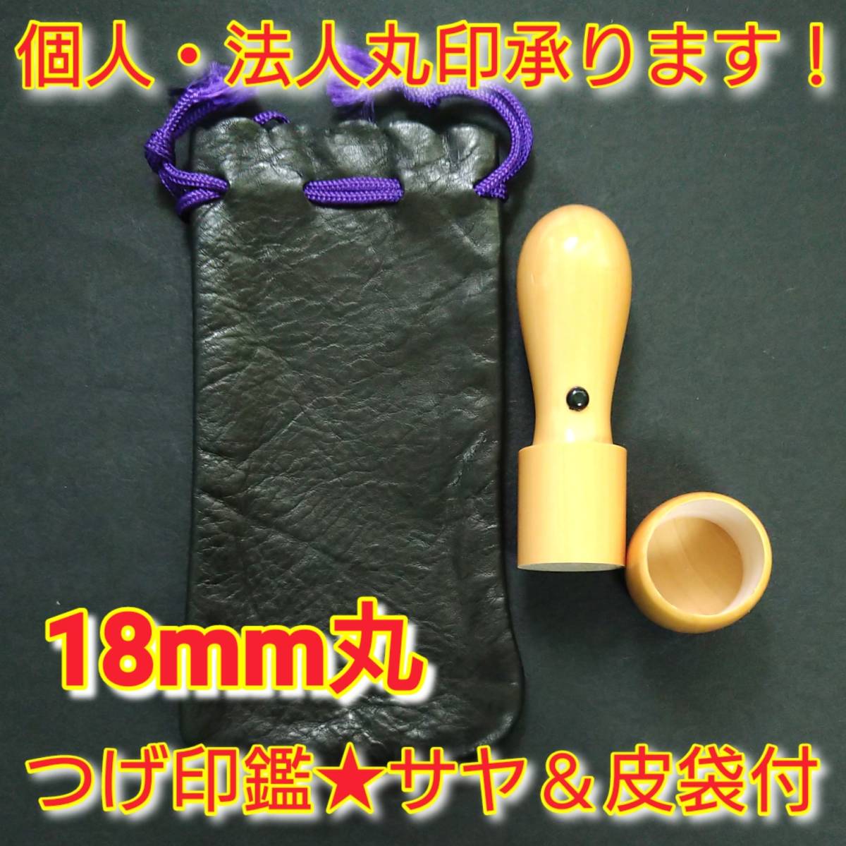 - 個人・法人丸印 つげ 18mm丸 アタリ・サヤ・皮袋付 ★0124★