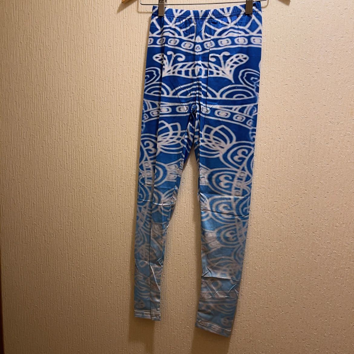 > 新品★ブルー&水色★エスニック柄★ヨガパンツ★レギンス★ホームウエア★M
