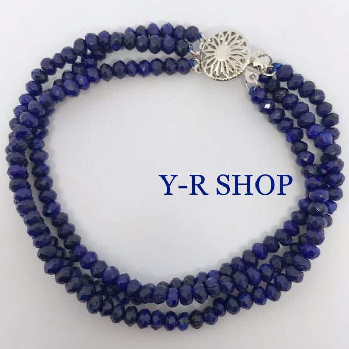 - 天然石★小粒サファイアの3連ブレスレット★レディース腕輪カラーストーンアクセサリーエスニックインドジュエリー新品宝石Y-RSHOP卸売