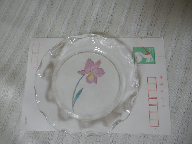 > レトロ ガラス製 小皿 コースター 5枚 セット 花柄 ガラスの小皿 可憐 模様 まとめて キッチン 雑貨 小物 兼用 可愛い お洒落 インテリア