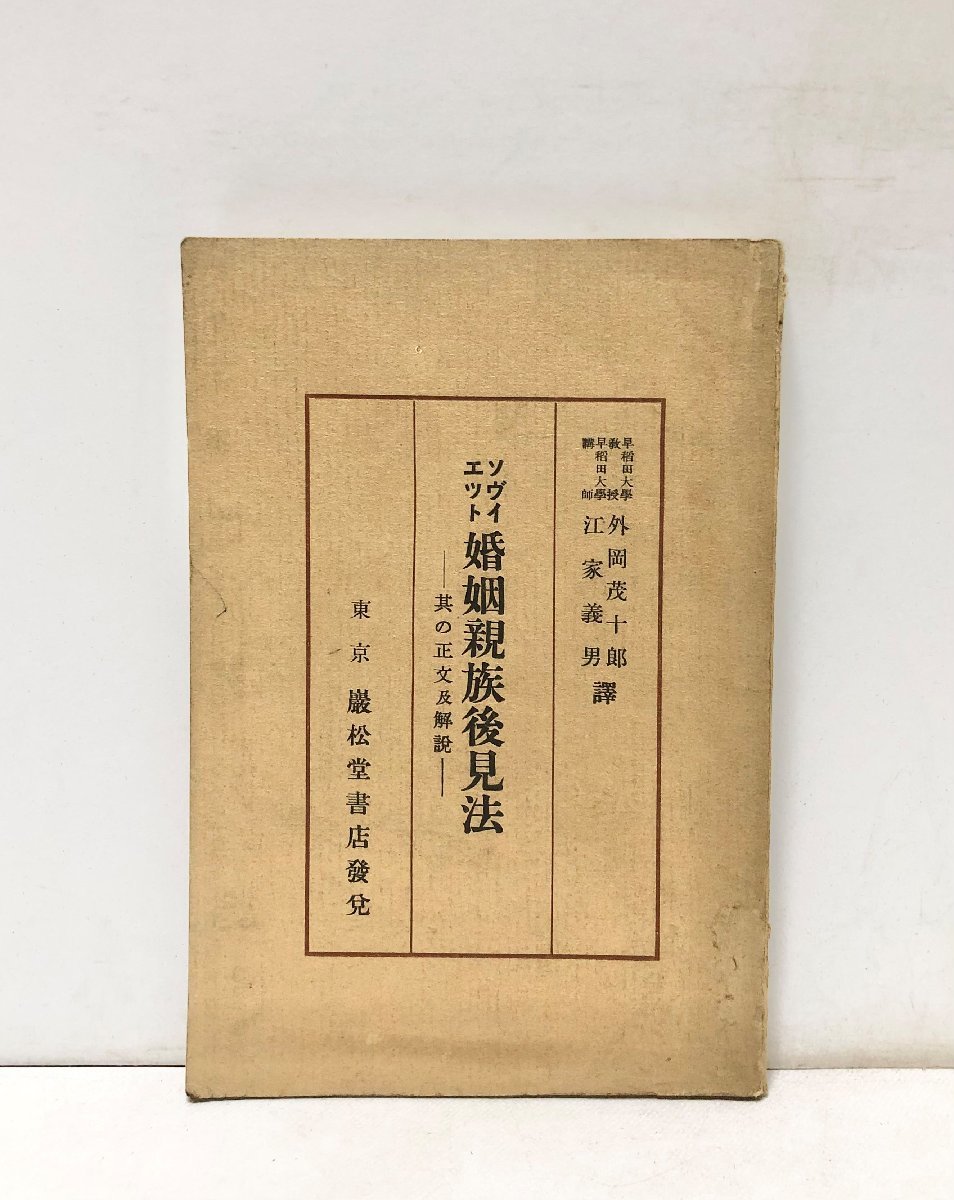 - 昭11 ソヴィエット婚姻親族後見法 其の正文及解説 外岡茂十郎・江家義男訳 91P
