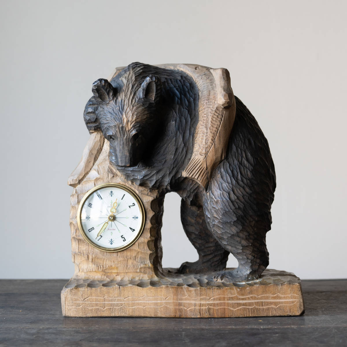 - 木彫の熊 時計付き 北海道 民芸品 木彫り熊 木製彫刻 飾り オブジェ 置物 民藝